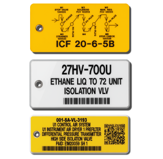 Contact Us TodayChemical Processing facilities present many challenges for labeling with their inherently harsh environments, diverse site-specific production processes, and extremely complex piping systems. We offer pipe labels, plant signage, and equipment tags that are specifically designed to withstand harsh conditions. Our labels are easily customizable to communicate present hazards and critical asset information to operations in areas where it’s most valued & visible.